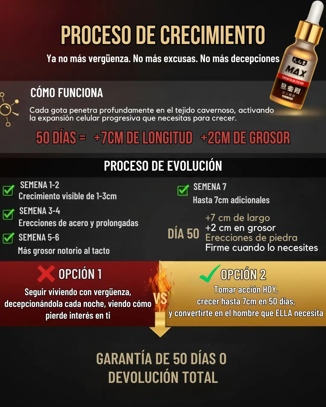 Gracias a su acción bioactiva, el producto estimula la expansión del tejido cavernoso, mejora la circulación y aumenta la firmeza. Logrando un crecimiento real, medible y visible.